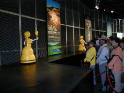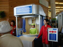 | これがヨメさんが1番見たかった → 「ロボット・インフメーション」です。 「喋ってみたい〜!」と言ってましたが、 こちらも長蛇の列だったので見るだけになりました。 休憩時間前に写真タイムがあるので記念写真はその時に! 会場内に3体いて、全て同じ顔らしいんですが メイクにより違った顔に見えるそうです。 |