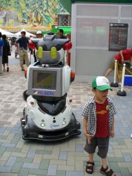 | ← グローバル・コモン5付近で警備ロボットを発見! 子供連れの方たちが、盛んにシャッターを押してました。 ロボット1台に係りの人が2〜3人付いてましたが、 ロボットが人に害を与えないように・・・と言うよりも 人がロボットに害を与えないように・・・と言った感じかな? 正式名称は「ALSOK Guard Robo i」らしいです。 1台いくらなんだろう〜? |