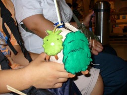 | ← このモリゾー・キッコロは中森さんの奥さんから 「私達夫婦は絶対に行かないから代わりに連れて行って〜」 のメッセージと共に、「お中元?」として頂いたもので、 ヤシの実ジュースと記念写真です! 最初は私のカバンに付けていたんですが、 下の子が「僕のカバンに付ける!」と持って行き その後、お盆を過ぎてもチャンと付けてます。 |