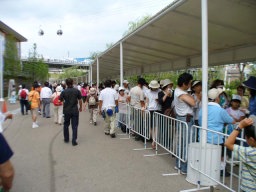 | ← 17:00から「グローバル・ハウス」の 整理券配布が始まります。 その15分前から並び始めたんですが、 すでに行列が出来ていました。 以前なら夕方は整理券をもらう人があまり居なくて 係員が「スグ入れる整理券あります〜!」と叫んでましたが 過去の話となったようです。 |